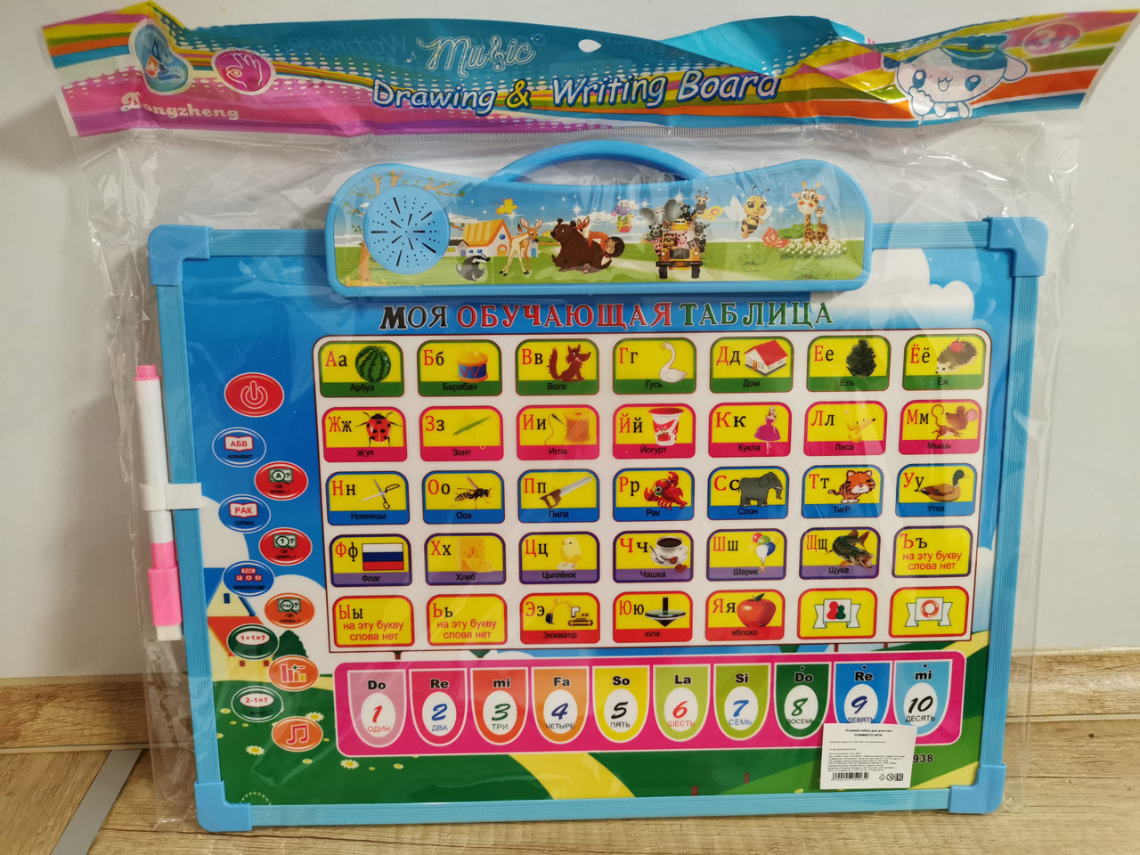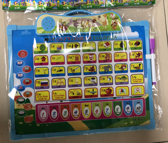 Планшет двухсторонний: с одной стороны алфавит и цифры с другой стороны поверхность для рисования.