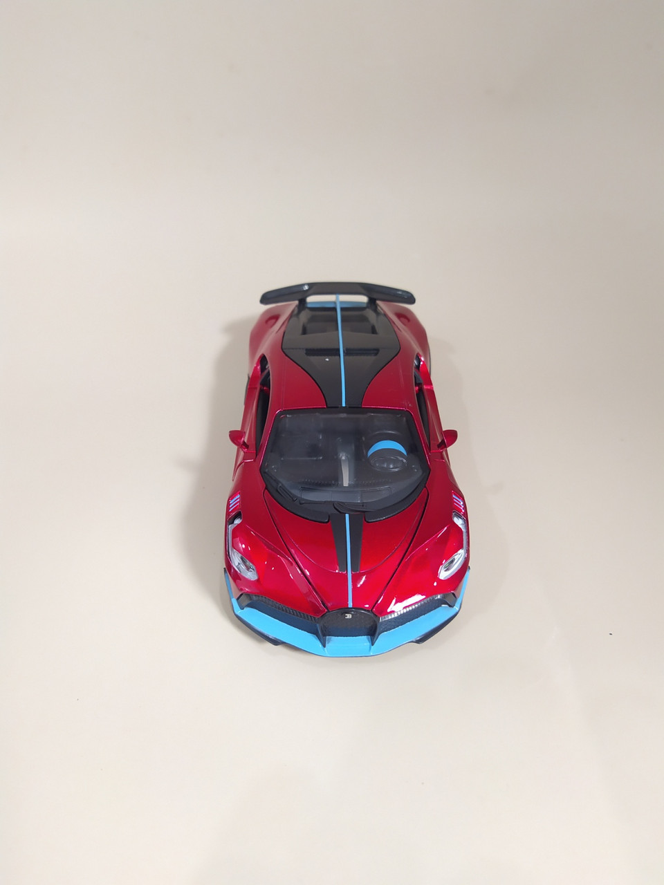 Металлическая инерционная модель авто Bugatti со светом и звуком. Двери, капот открываются. Работает от батареек 3 AG13/ 1.5V (в комплект входит демонстрационный вариант батареек, рекомендуется приобрести новый комплект).