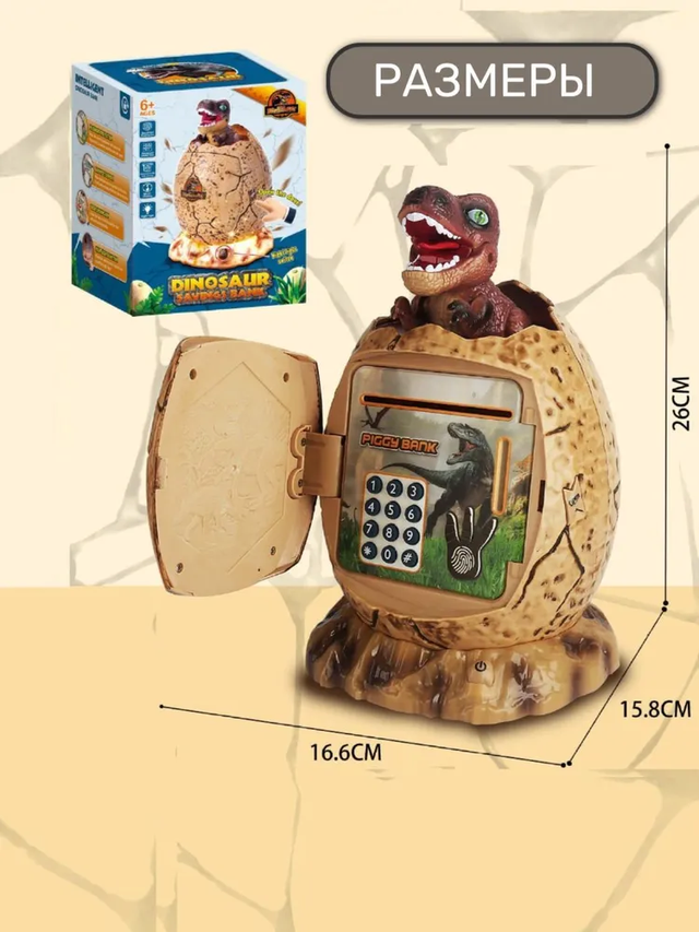 Копилка для денег "Яйцо динозавра" отличный подарок как для взрослого, так и для девочки.