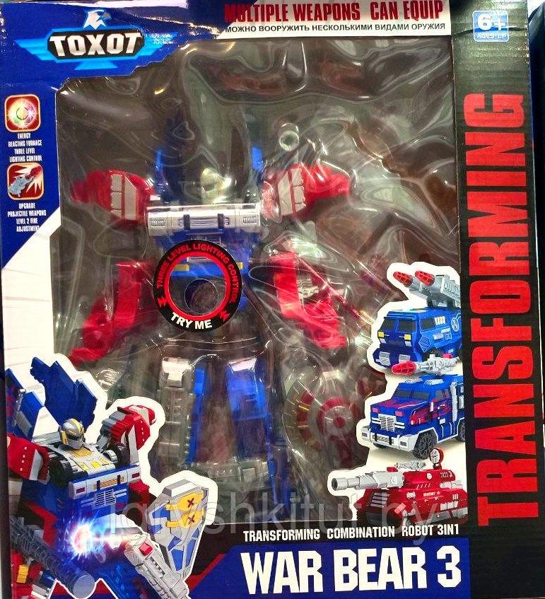 Качественные соединения позволяют неоднократно производить трансформацию из робота в машинку и обратно Трансформер 3 в 1 обязательно понравится любому ребенку.